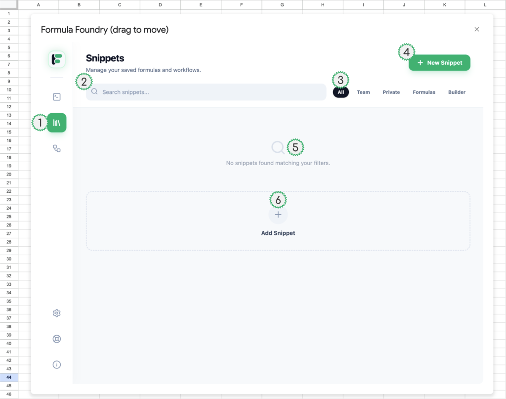 - Button to create a new Snippet